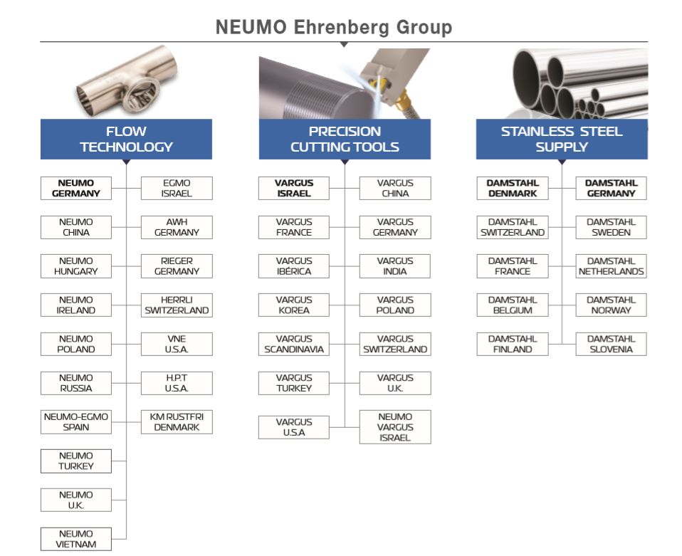The NEUMO Ehrenberg Group is one of Europe's largest privately owned manufacturers and distributors of stainless steel products and metal cutting tools.